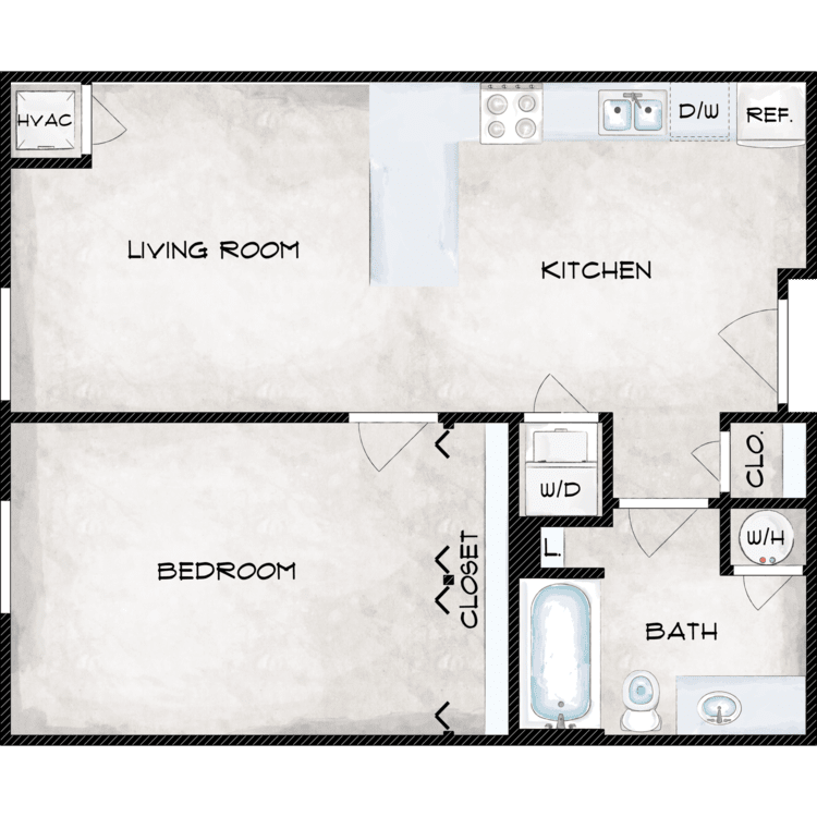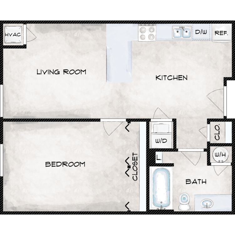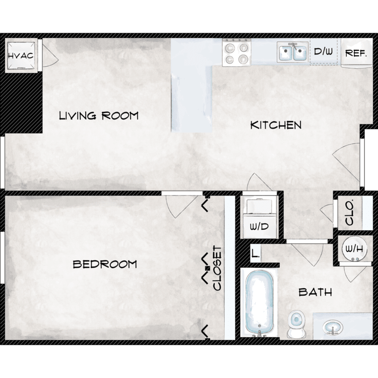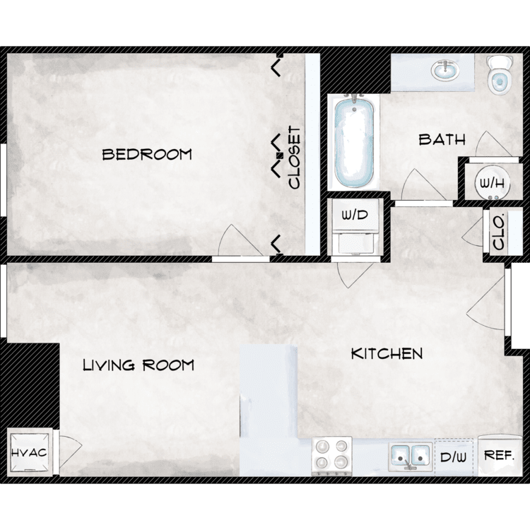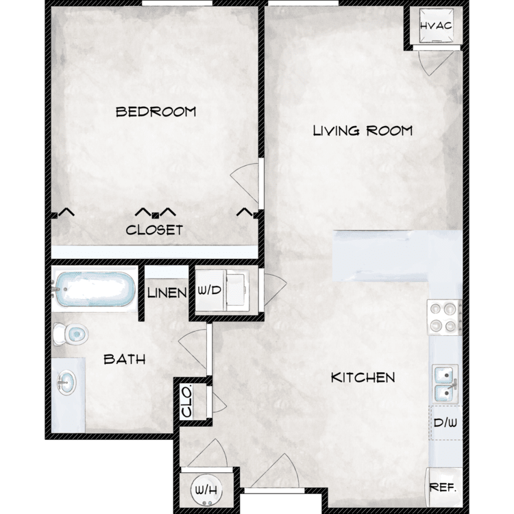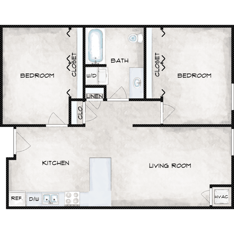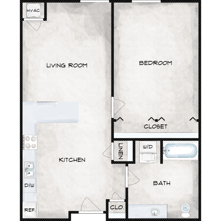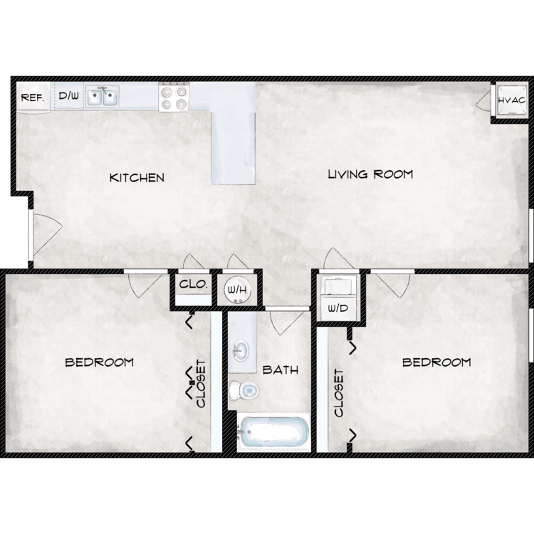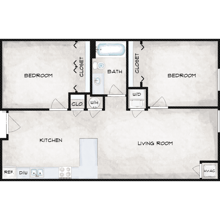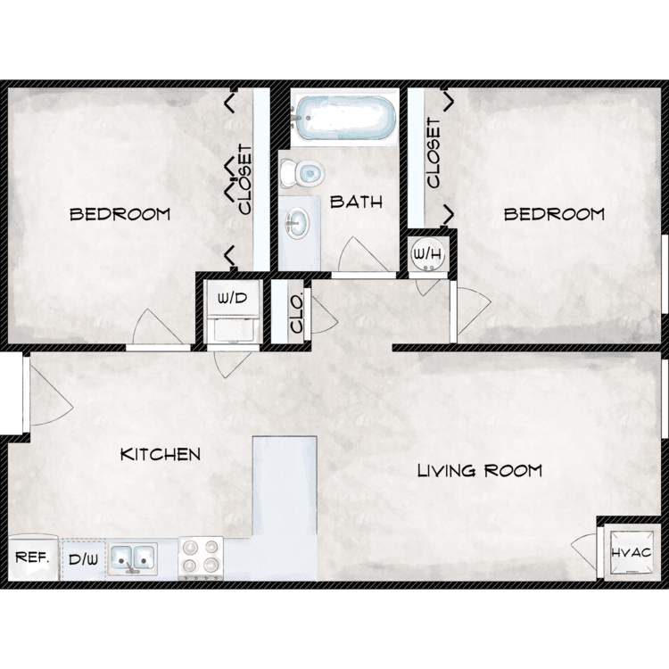 Our floor plans are sure to impress. We offer affordable one and two-bedroom apartments for rent with your desired amenities. Each residence includes a fully equipped kitchen with a dishwasher, microwave, and refrigerator. Modern finishes, carpeted bedrooms, and a washer and dryer are also included.